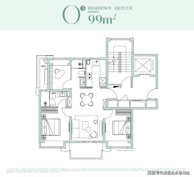 在核心滨江想把总价控制在友好区间,99㎡是极少见的选择。三开间朝南、一梯两户、无连廊,尽可能减少浪费、抬高实得;