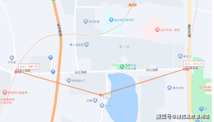 医疗上,项目距离武汉市一医院盘龙城院区直线距离约1公里,还比较近。