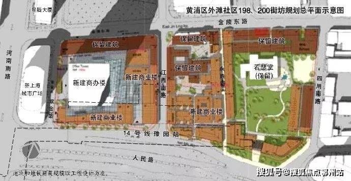此前黄浦区披露的地铁14号线豫园站上海地块开放方案,就是在保留金陵路骑楼与一众历史保护建筑的情况下,新建一座185米的地标办公建筑,以达到现代与历史相融合的目的。