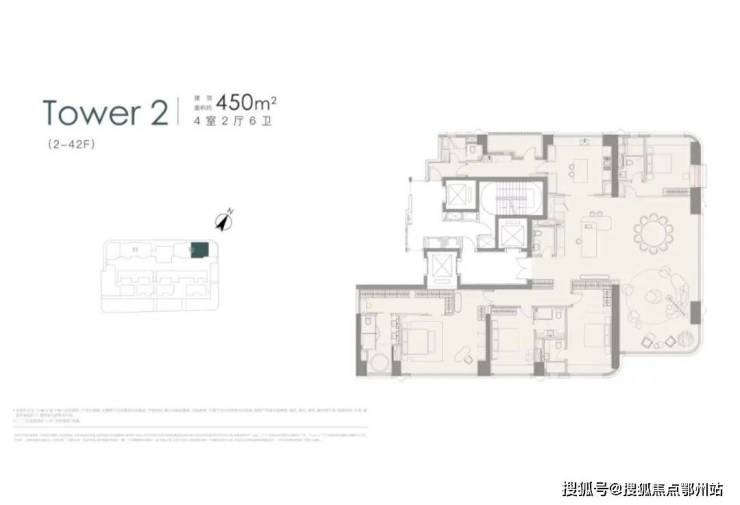 项目首开南地块T3、T4的2幢150米超高层地标大宅,首期主力户型为270㎡/288㎡/338㎡的以及少量608/640㎡的城市封面级天际大平层。