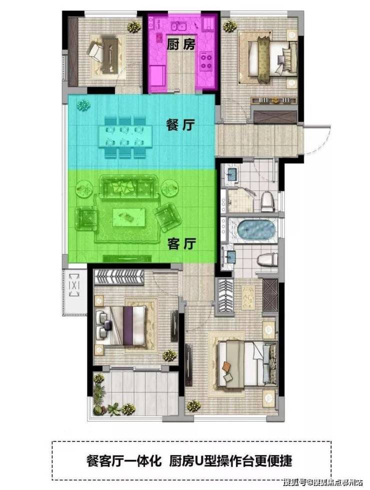 也离不开自身的户型设计。在华著澄园,建筑面积约120㎡的空间里,即可实现人们的“四房梦”。
