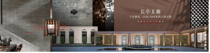 泳池南北两栋楼王的入户大堂则采用红色陶板加翡翠白玉大理石,与社区入口一脉相承的海派调性;其他楼栋的入户大堂也采用了大理石+金属屏风的组合,低调奢华;地下去地库化,设置地下光厅。