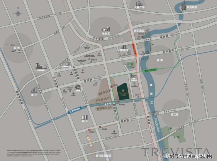 项目所处的闵行梅陇板块是外环外距离市区最近的片区,项目到外环直线距离仅约1km,约3km可达中环,向西约2km到虹梅高架,向东约1.8km即是黄浦江岸,南侧的银都路跨江隧道也在建设中,预计2024年通车,可直达浦东金色中环。