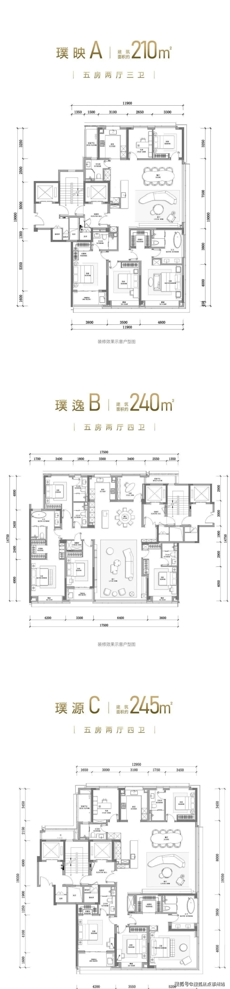 ✅ 奢阔户型:高层210 - 280㎡