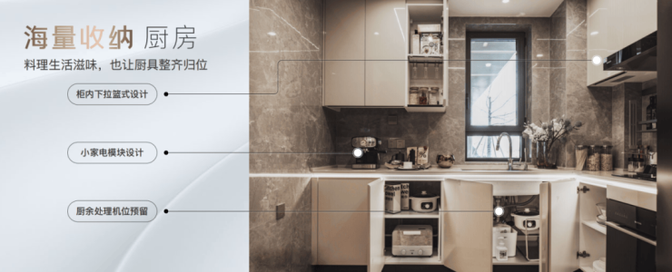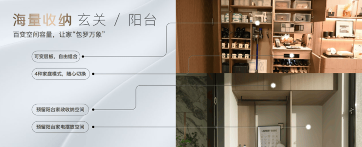 针对这点,保利·光合上城依然不惜成本只为品质,打造定制级全屋收纳系统,从玄关、厨房、卫浴、阳台四大空间, 充分考量生活场景细节,随时随地满足收纳所需 ,带来4重海纳系统,让每一个业主都成为空间管理大师!