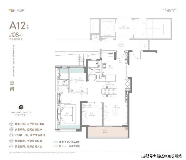 而建面约108㎡的明星户型,则在有限的空间内做到了尺度感与舒适度的最大化。 横跨客厅与次卧的巨型宽面阳台 ,采光面极为奢侈