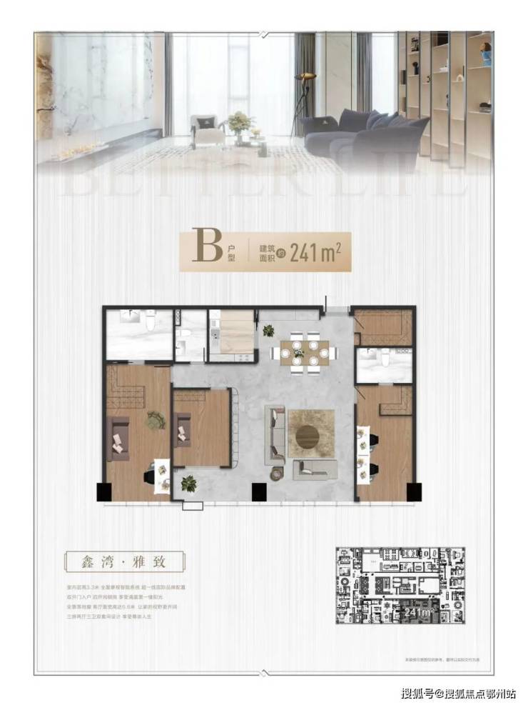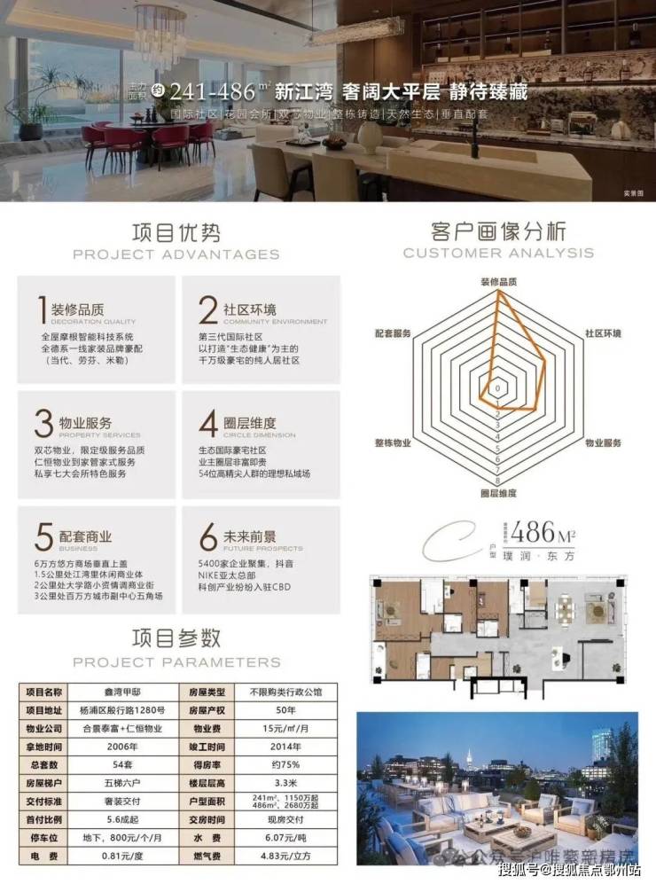鑫湾甲邸定位为“整栋规划高阶顶奢大平层”,主打241 - 486㎡奢装大平层。