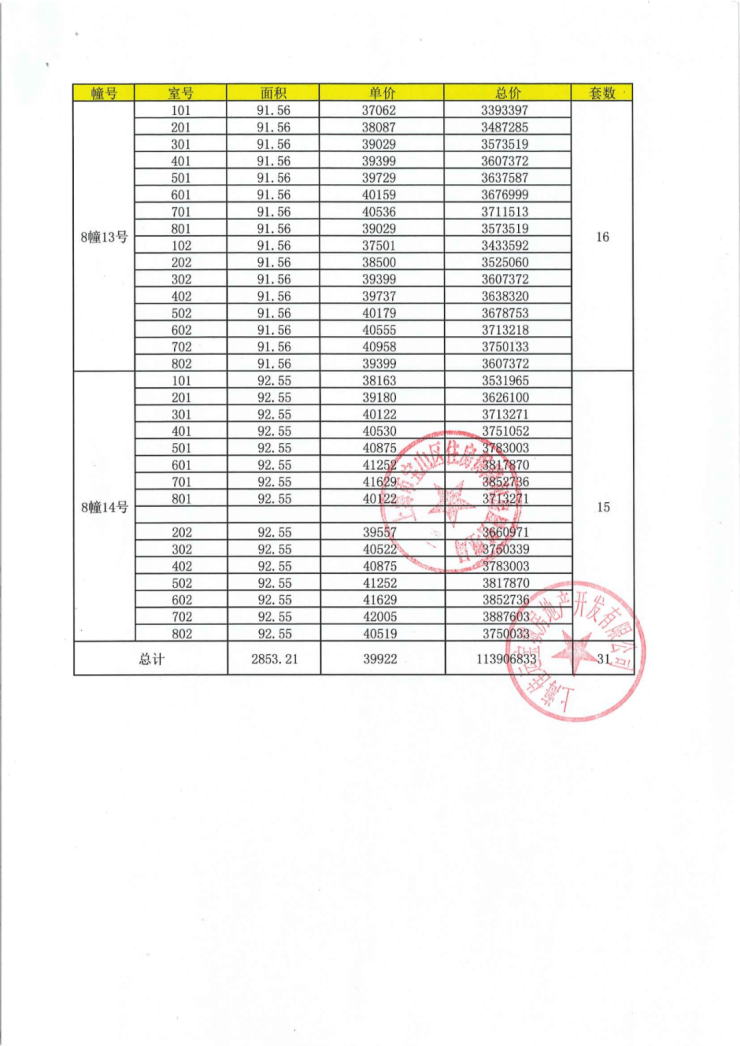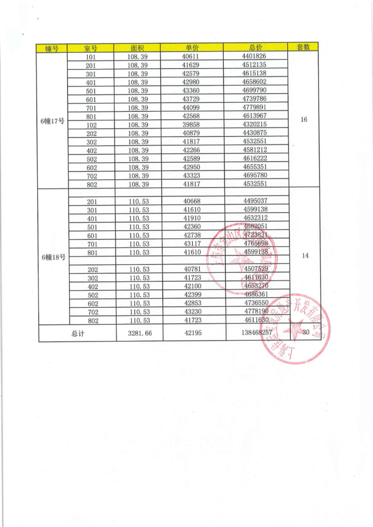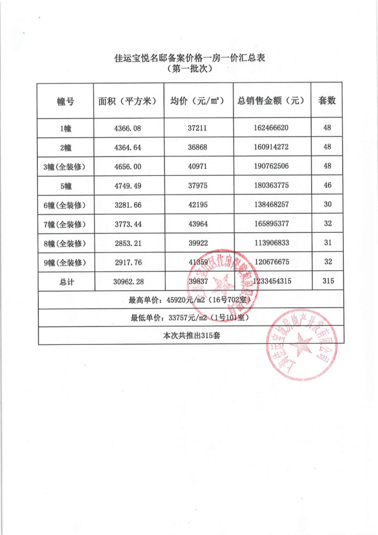 上期一房一价表: