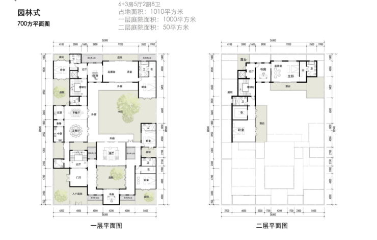建面约450-700㎡园林式合院;