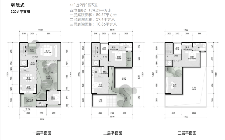 建面约290-360㎡宅院式合院;