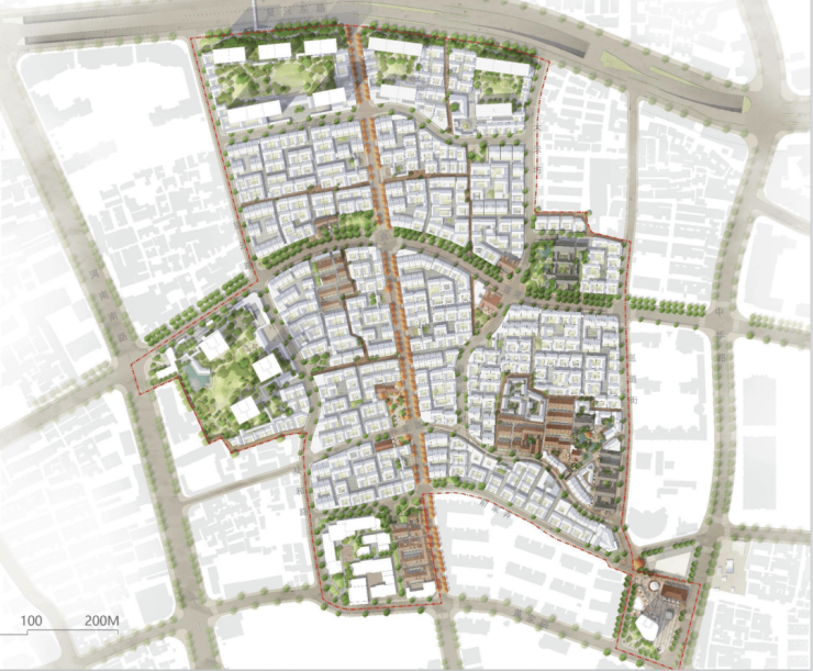 所以实施方案设计 分散成三个大组团,绿发新梓园就是乔家路A地块。