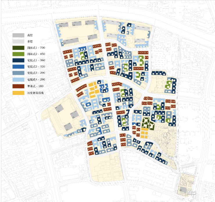 高层:约155790㎡;多层:约17280㎡;低层(别墅)约144186㎡;历史建筑:约4068㎡。