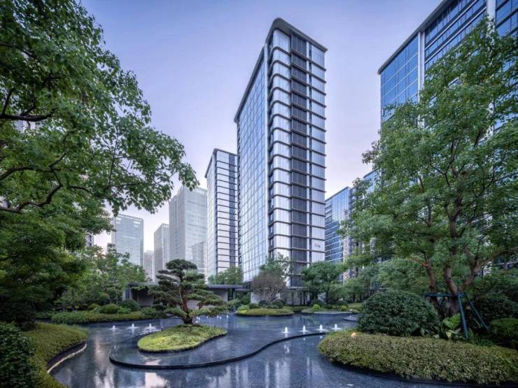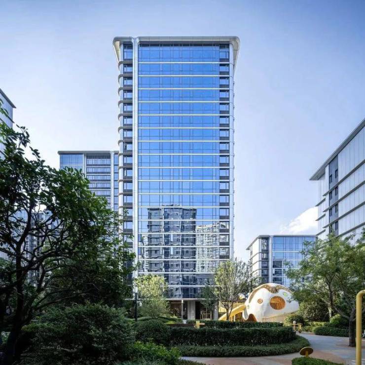 在景观设计上,九樾府偏向于新加坡的现代园林风格,运用大量曲线元素柔化了建筑的棱角感。地面流线设计强调人性化归家场景,架空层挑高高度和材质的精心考量,使得项目呈现出极佳的落地效果。立面表皮采用全铝板幕墙体系,结合LOW-E玻璃及金属线条,展现出通透、光洁、轻盈的建筑形体,为城市增添了一抹动人的风景线。