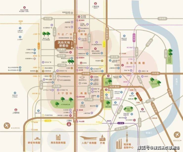 南靠大宁商圈、久光百货、人民广场繁华闹市,东靠五角场商圈