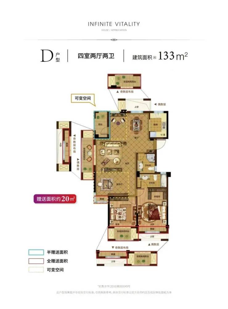 ▫️133㎡四房:“王炸”户型,双层挑高阳台+约20㎡可变空间,改善首选