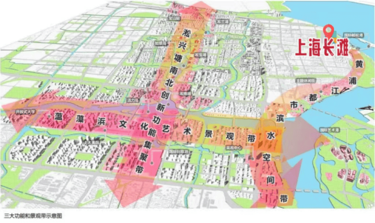 大吴淞地区整体的规划框架是要打造一个标志的 “三江交汇”的上海之门,也就是三长江、黄浦江和蕰藻浜。这三江都是具有通航能力的河道,除了能够提供独特的景观价值之外,还能为产业提供很好的航运条件。