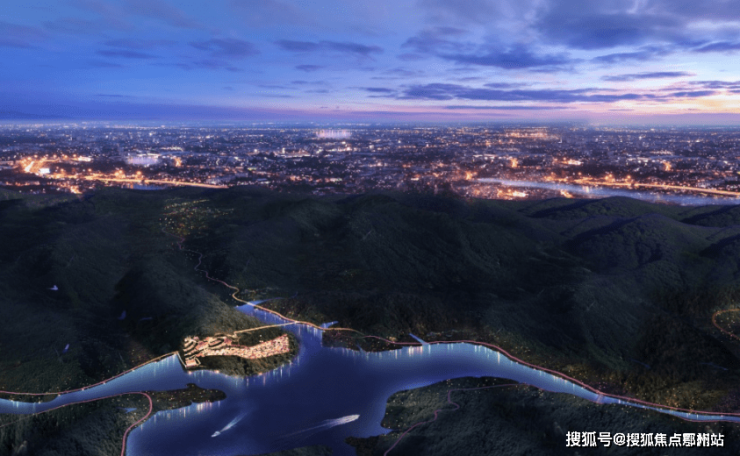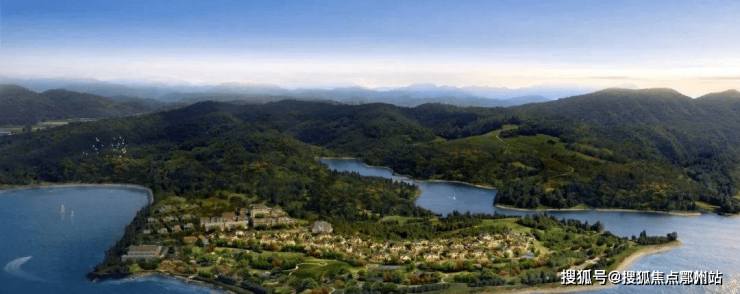 由山脉延伸至湖中心,售楼处电话400-112-0302形成坐山面水、