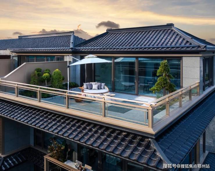 久映颂月府的投入远不止这些奢石、古树,从排屋建筑外立面也能看出一些隐形成本,伊朗进口的蓝眼睛石材,大面积落地玻璃,香槟色铝板,就连北向立面也是如此。排屋能成为改善天花板,是因为其有天有地,有私密性,久映颂月府则把这些属性拉满。在常规的排屋打造基础上,久映颂月府进一步精进产品户型设计,提升排屋产品的附加值。