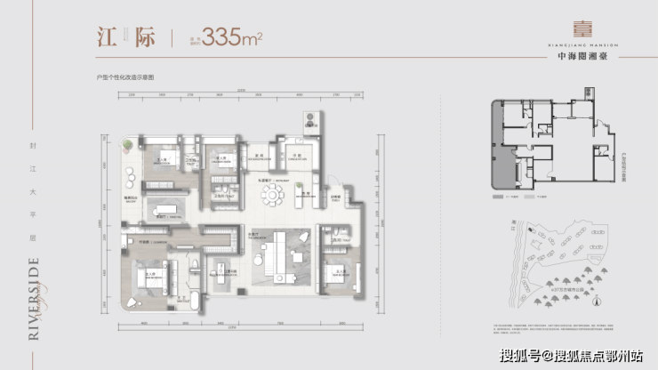 其中,约276、335平户型,奢华主卧套房中,均设计了270 °瞰江面、衣帽间、独立书房。在享受视野超赞的江景面同时,保障私密性。