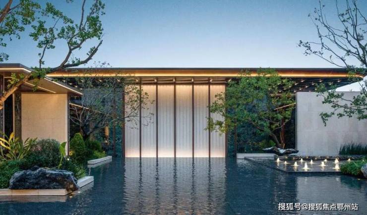 穿过归家大堂,入眼的便是大片的镜面摩登水院,涌泉叠水,高低错落、动静相宜。 景观 设计团队更是在水院里做了一个下沉式卡座,未来业主可以在这里闲坐观景,与三五好友可以畅聊天地。