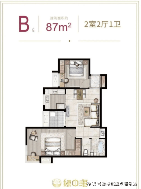 建面约87-89㎡2房2厅1卫