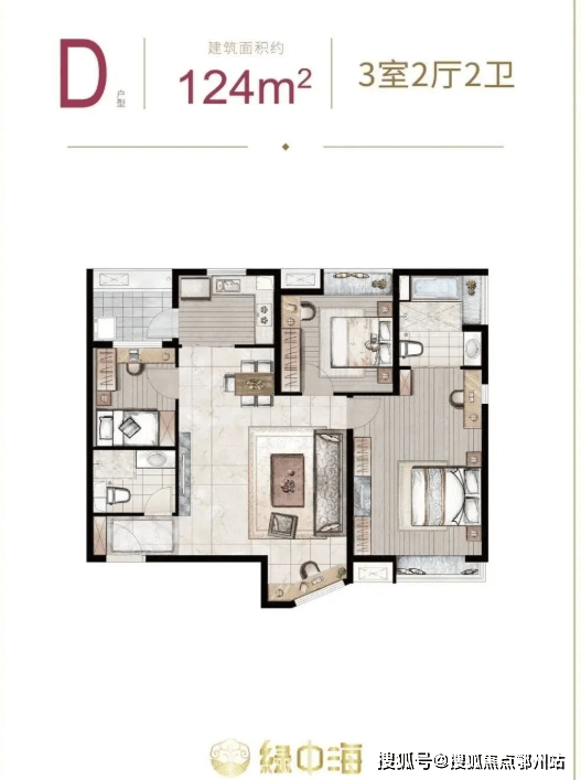 建面约124㎡3房2厅2卫
