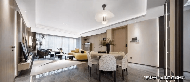 模糊了别墅和小高层住宅之间的界限。客厅、餐厅、厨房一线拉通,风景入户