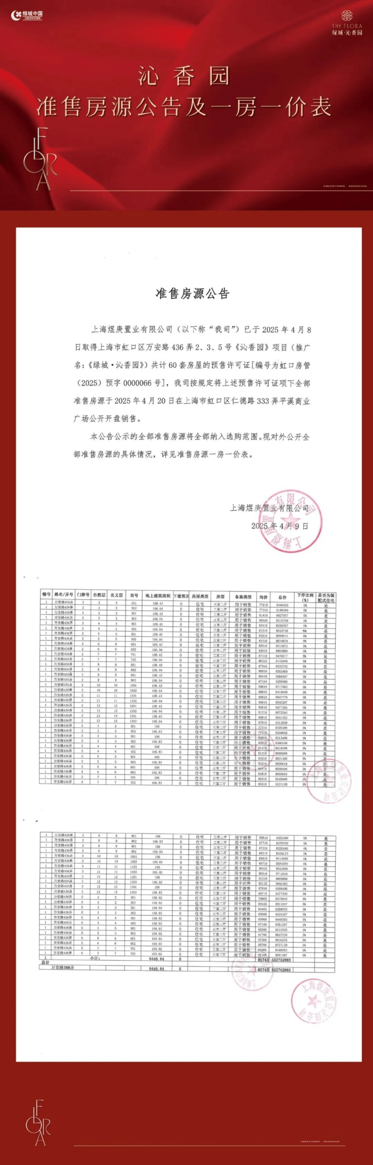 虹口·江湾 品质新盘「 绿城·沁香园 」还有少量工抵房136㎡4房㎡洋房产品,总价1325-1362万;售楼处线上火热预约中!