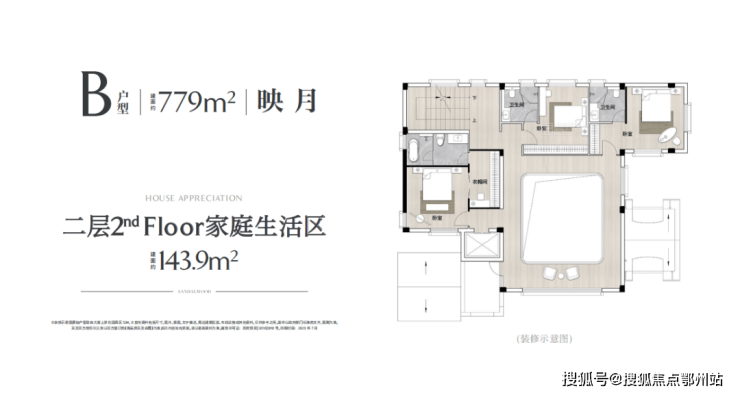 二楼居住休息区星级多套房设计,可以根据家庭需求进行改造,满足多代同堂的舒适居住需求。