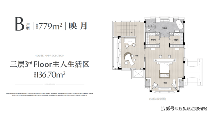 ※二层、三层可实现最多6个卧室套房的设计,做到家庭成员平权,满足多代同居的世家门第。不仅有子女套房+长辈套房,还有足足136㎡的总统级主人套房,涵盖大露台+卫生间+双书房+男女主人双独立衣帽间+休息室等。
