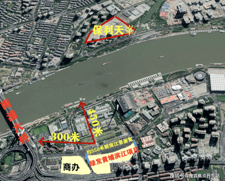 项目地块位于黄浦区的世博滨江板块,紧邻内环高架中山南路,距离黄浦江仅450米左右。南向瞰江方向视野开阔,没有高大建筑物阻挡, 和对岸的保利世博项目可以隔江对望了。