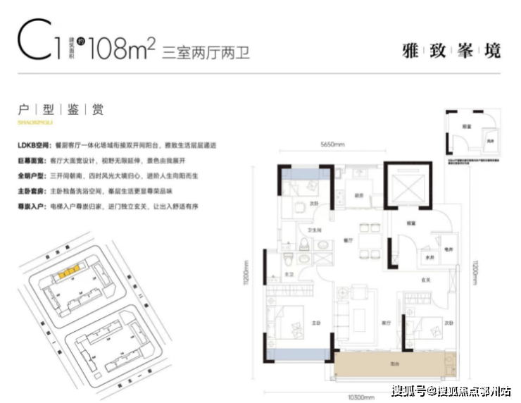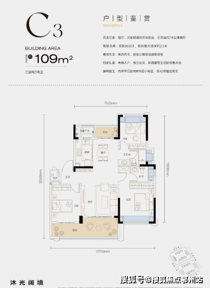 独立玄关入户,私密性与仪式感十足。三开间面宽可达约10.75m,1厅2卧直面阳光,采光性和通透度都非常优越;双阳台+四飘窗设计,不仅空间尺度更大,还实现了板式通风对流布局让空间变得舒适、自在;阳台最大进深达到约2.2m,承载了诗意生活的所有想象。