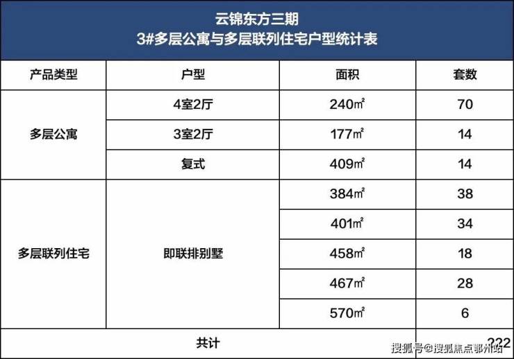 多层公寓:约177平3房14套,约240平4房70套,约409平复式14套