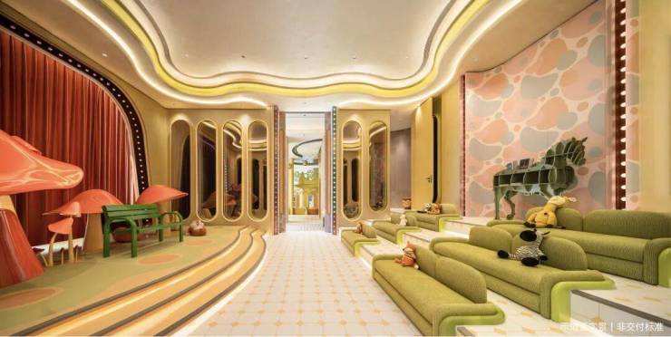 目前已呈现的 四大主题架空层 ,如 室内外联动童玩区 ,双层挑高约8米,内有剧场、儿童厨房、益智游戏、攀爬区、山丘滑梯等,外有飞船、峡谷滑梯等,这不比花钱的奈尔宝还要丰富精彩?