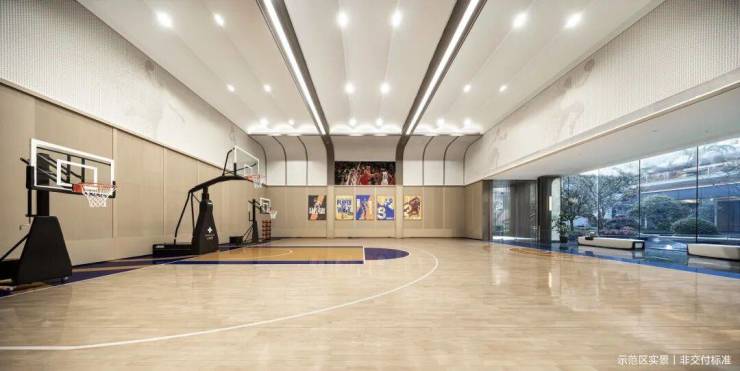 你看, 建面约2000方运动性主题泛会所 里,集 恒温泳池、健身房、室内篮球场、瑜伽室 于一体的高品质空间,主打健康与社交的活力。