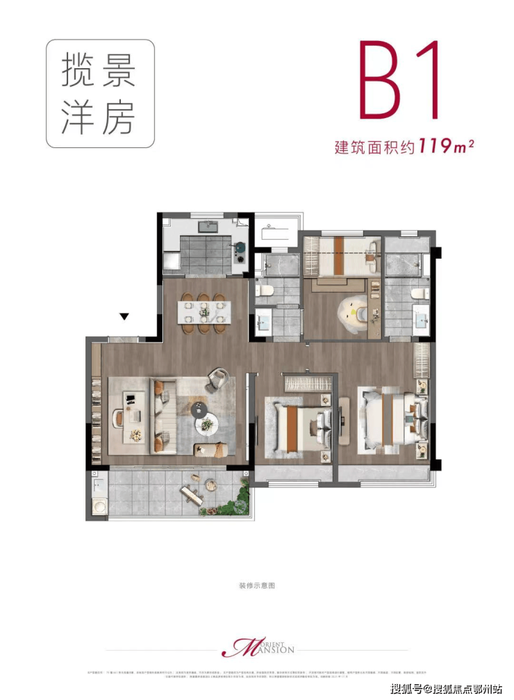 ·建面约136㎡奢阔大三房,感知优雅日常