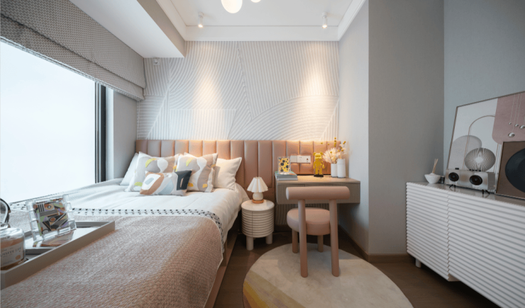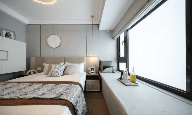 主卧也颇具亮点,面宽达到约3.5米,飘窗的尺度很给力,进一步扩大了使用空间。