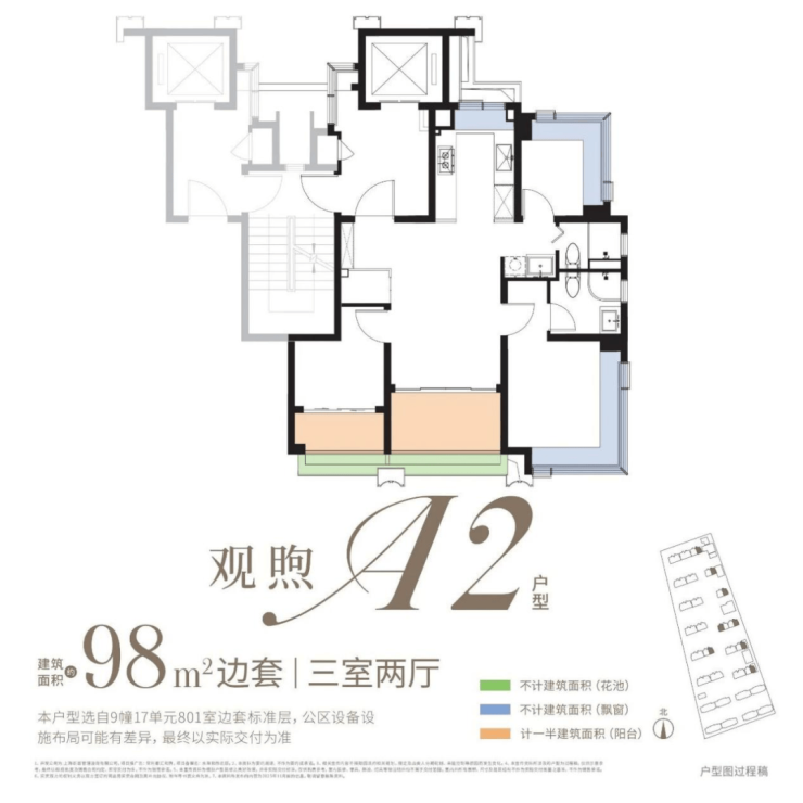 约98㎡3房:类一梯一户、内部飘窗为轻质墙板,后期可自行拓展!双阳台+景观花池是核心亮点(市面双阳台户型起步多为约110㎡),整体附赠约23㎡,是罕见的高实得率精致户型。
