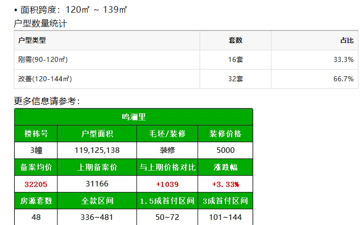 备案均价 32205 元/㎡,上涨 1039 元/㎡,涨幅 3.33%