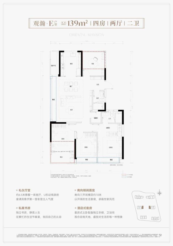 约139方则分为横竖两款,全部为边套,两梯两户设计,尊崇感和私密感兼备。“横版”是四开间朝南+大方厅+L型转角飘窗的“全景舱主卧”+超级双联阳台;“竖版”有大边厅带超长观景飘窗+约10米南向三开间+酒店式套房……房源数量很少,且摇且珍惜。