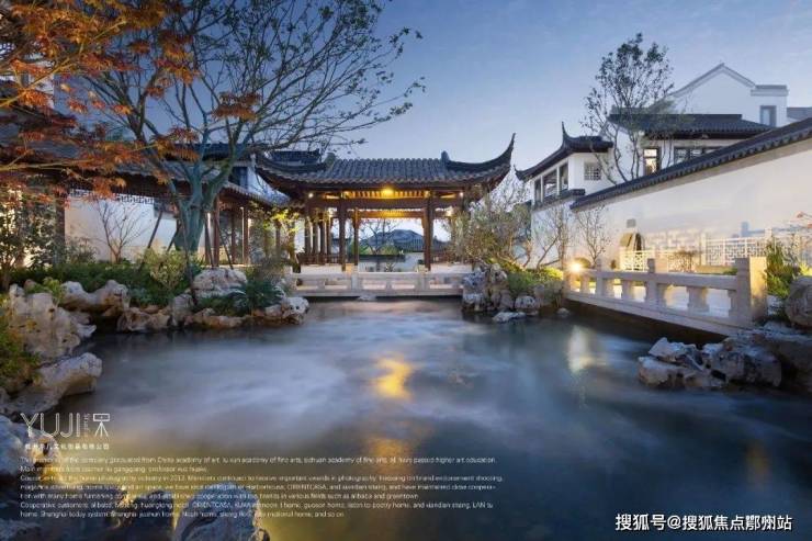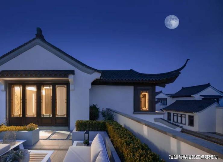 富春玫瑰园中国院子除传承绿城中式产品中的青瓦白墙、飞檐庑廊、影壁漏窗、水榭亭台等中式建筑元素外,