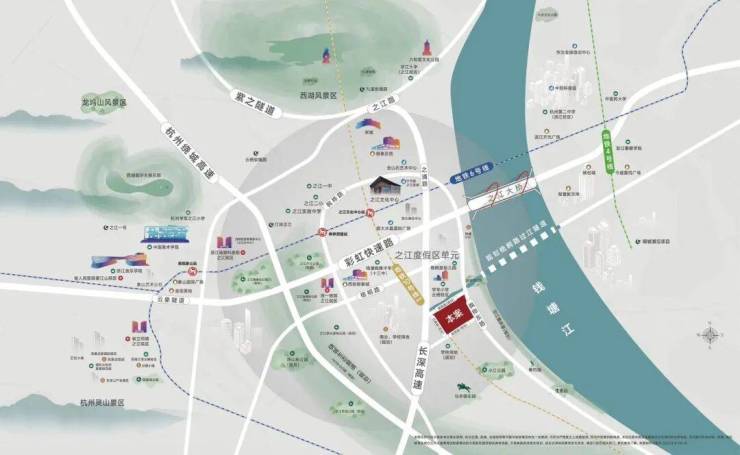 一条钱塘江,串联【钱江新城CBD】【滨江板块CAZ】【之江板块CED(中央生态区)】三大中芯。 之江,是杭州主城区西湖景区生态王者,定位杭州CED中央生态区,兼具生态调节、文化展示,以及创新孵化等功能。区域内未来住宅增值潜力巨大。