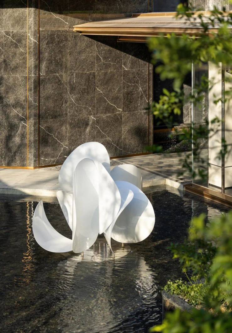 由中国美院副教授施海倾心打造的《海棠知语》雕塑,立于水景中央,柔光漫过细节,步履皆是礼遇。