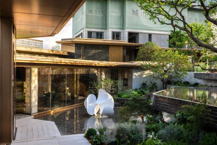 知海棠的前庭,它直接将“西湖十景”的原生意趣融入其中,当你在社区步道间自由穿行,上下漫步时,如行走在自然的峡谷溪涧之中。当你在生活馆的书吧阅读时,外界的风光也映入眼帘,带来一种被山川溪谷包裹的自然疗愈感。