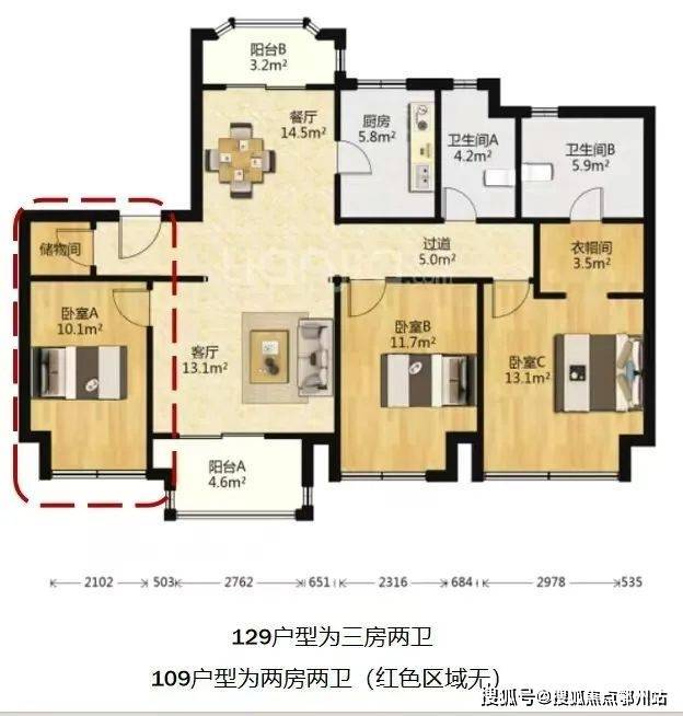 109平户型少了一个房间:仅2套!