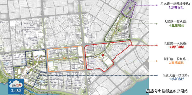 根据相关部门编制的襄棉铁路专线综合整治规划,项目采用“微改造、精提升”策略, 分为滨江客厅、襄棉森林、烟厂动城、化建展台、焦柳百汇五大主题分段 ,优先实施襄棉森林、烟厂动城两段。