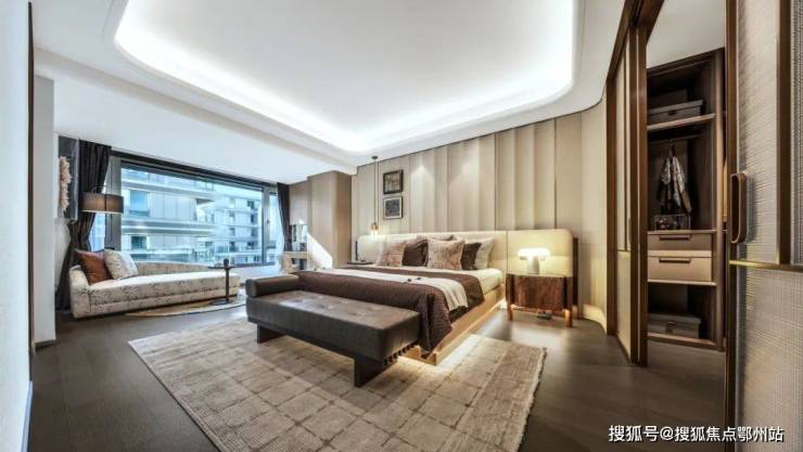 总裁级主卧,约4米面宽、约5.7米进深,更以独立式衣帽间、主卫双台盆、瞰景式浴缸,重构顶流生活。