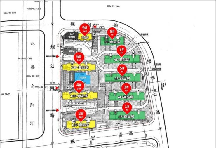 预计建 4幢14-16层高层住宅 , 5幢4-5层多层住宅(叠拼) 及配套公建用房和社区配套设施,社区采用全部人车分流。