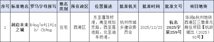 华润&杭州地铁西湖区三墩单元商住项目【杭政储出(2025)93号】备案名为: 润启未来之城 。