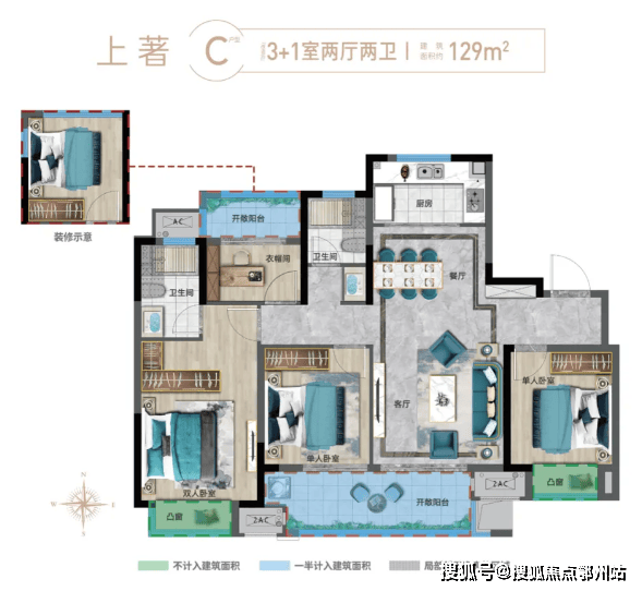 上著 C户型 建面约129㎡